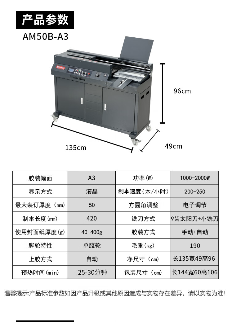 震旦/AURORA AM50B-A3 装订机 50mm全自动柜式无线胶装机A3幅面标书文件书籍论文报告合同 热熔胶粒装订机 自营
